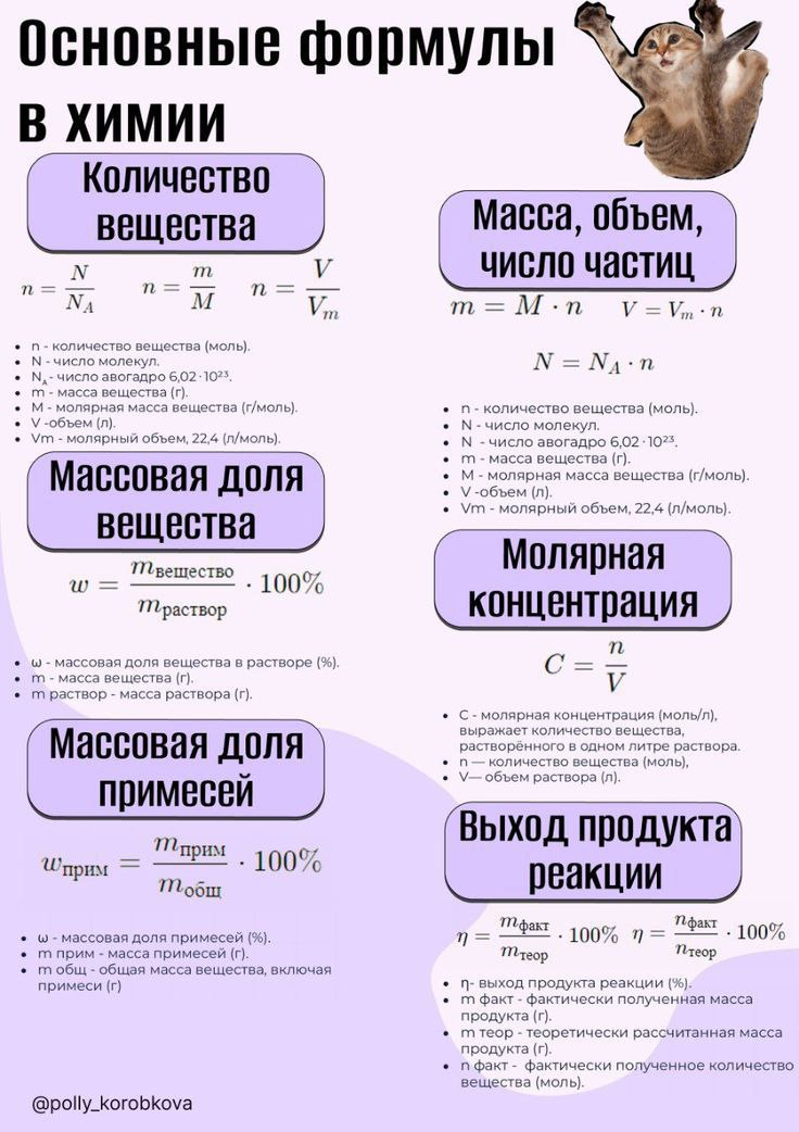 Основные формулы в химии, вспомним!