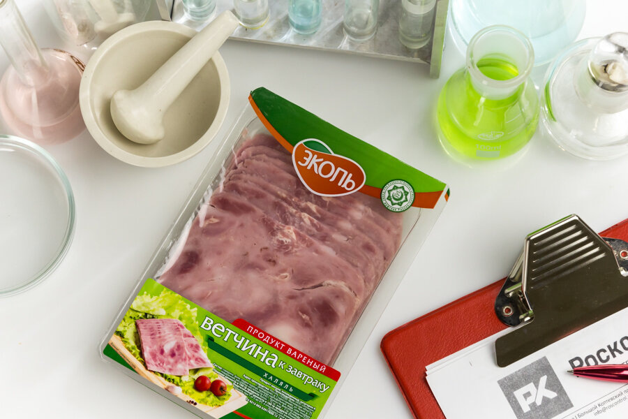 - Проверенный образец соответствует требованиям технических регламентов ТР ТС 034/2013 и ТР ТС 021/2011 по микробиологическим показателям и по содержанию токсичных элементов, ТР ТС 029/2012 — по содержанию нитритов, фосфатов. Образец имеет хорошие органолептические показатели: консистенция, диаметр батона, цвет на разрезе, вкус и запах, свойственные ветчине для завтрака. Экспертиза показала, что образец не содержит консервантов: сорбиновой и бензойной кислот и их солей.