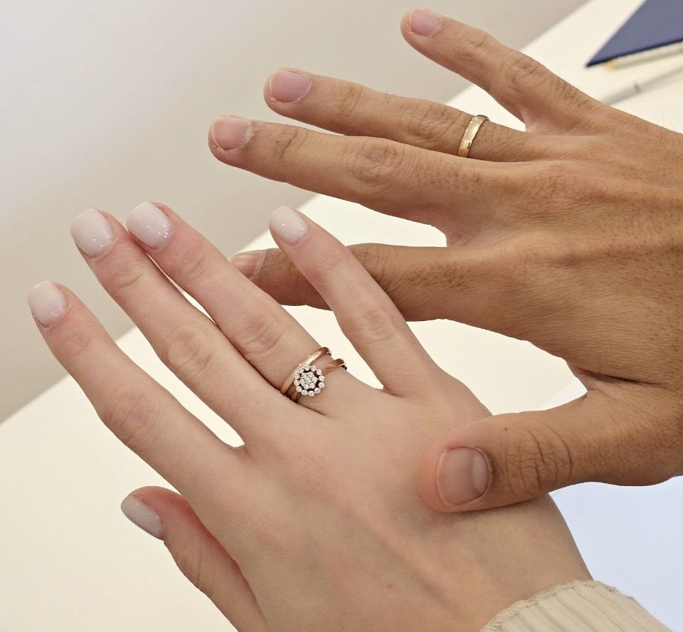 Каждый раз чувствую нежный трепет, когда вижу кольцо на его пальце. И когда смотрю на своё. Я выбирала его с огромной любовью и оно мне безумно нравится. Для меня это украшение очень многое значит. Мечтала расписаться побыстрее, чтобы поскорее надеть своё колечко. Привыкла не сразу, но сейчас это часть меня, вообще не снимаю.
