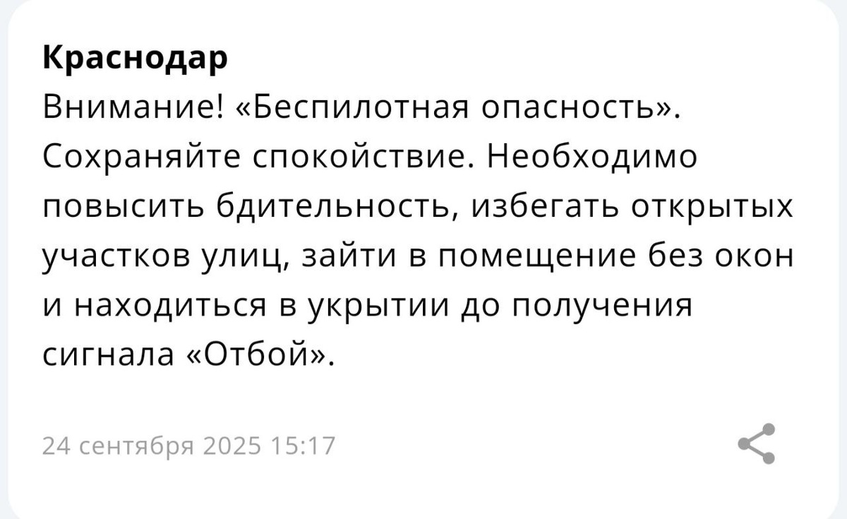 На территории Краснодара и края объявлена «Беспилотная опасность».