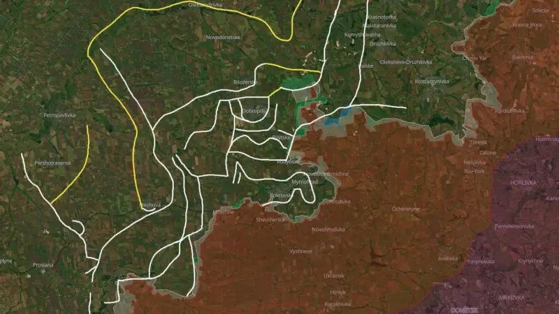 Западные военные эксперты опубликовали карты и спутниковые снимки оборонительных укреплений ВСУ в Покровске и его ближайших окрестностях. Утверждается, что вокруг города создан так называемый пояс укреплений с ДОТами. Однако достоверность этих сведений вызывает серьезные сомнения. Дело в том, что, согласно сообщениям с мест, большинство опорных пунктов противника южнее Покровска и восточнее Мирнограда представляют собой изолированные окопы вдоль посадок. В ВСУ их называют «траншеями смертников», поскольку они даже не связаны между собой и не позволяют обороняющемуся в них личному составу быстро отойти или перегруппироваться в случае серьезного наката со стороны ВС РФ. Единственное, за счет чего держится оборона этих окопов, – большое количество артиллерии и дронов. На опубликованных картах также можно увидеть так называемый последний рубеж обороны в 30 километрах западнее Покровска. Он обозначен желтым цветом. При этом утверждается, что его строительство уже полностью завершено. Однако