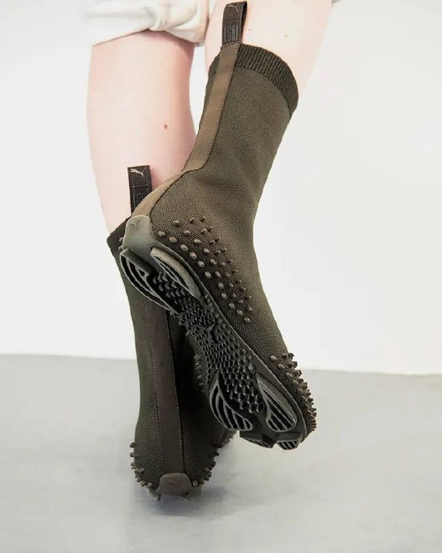 PUMA, в сотрудничестве с французским независимым дизайнером Луи Габриэлем Нучи, представила обновленную версию носков Mostro. Это новая интерпретация оригинальной гибридной модели, выпущенной в 1999 году. Хотя дизайн сохранил основные черты Mostro, он стал более элегантным и современным. Nouchi заменила оригинальный ремешок на носок высотой до щиколотки, что придало обуви более обтекаемую форму. Несмотря на эти изменения, кроссовки сохранили свою узнаваемую индивидуальность благодаря резиновой подошве с шипами, которая осталась неизменной с первого выпуска Mostro.