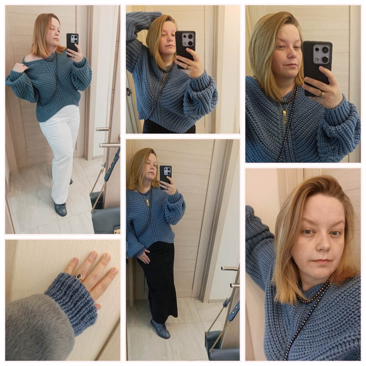 Итак, идеальный свитер для фотосессий в холодное время года мною найден. Цвет синий джинсовый. Очень красиво смотрится. Я взяла в коротком варианте, но есть ещё другие.