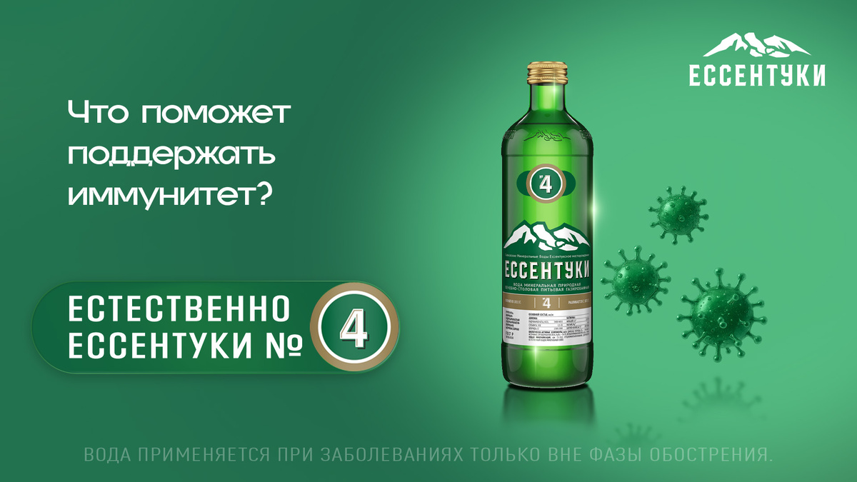 В природной минеральной воде «Ессентуки № 4» и «Ессентуки № 17», которая формируется в недрах Кавказских гор, более 30 важных природных минералов. Благодаря богатому природному составу «Ессентуки» помогают поддерживать защитные силы организма.