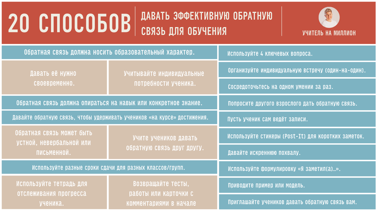 20. Приглашать учеников давать обратную связь вам, как учителю