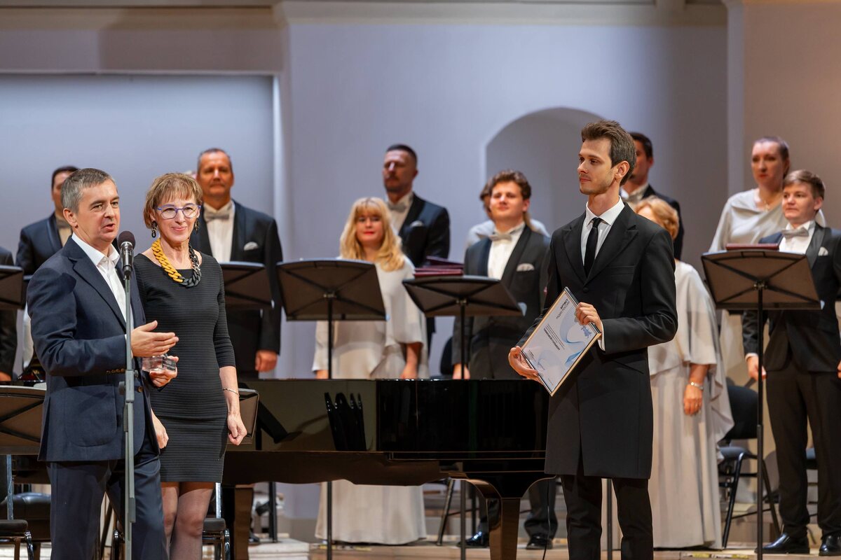 Вручение премии "Артист Радио России" На сцене Концертного зала имени Чайковского в Москве состоялось вручение премии "Артист Радио России" Тимофею Гольбергу – художественному руководителю и главному дирижеру Московского государственного камерного хора. Церемония прошла перед концертом, открывшим новый сезон коллектива. Премия, учрежденная в 2016 году, уникальна, она присуждается молодым талантливым артистам и предусматривает информационную поддержку их проектов в радиоэфире в течение трех лет. Среди лауреатов такие теперь уже громкие имена, как оперные певцы Владимир Дмитрук, Диляра Идрисова, Василиса Бержанская, Сергей Кузьмин, пианист Константин Емельянов, дирижер Алексей Рубин, режиссер Ляйсан Сафаргулова и многие другие. А теперь, впервые, Артистом Радио России стал хормейстер – Тимофей Гольберг. Вручая приз, заместитель директора ГРК "Радио России" Владислав Коваленко отметил приверженность Тимофея традициям русской хоровой школы, а музыкальный обозреватель радиостанции Ольга