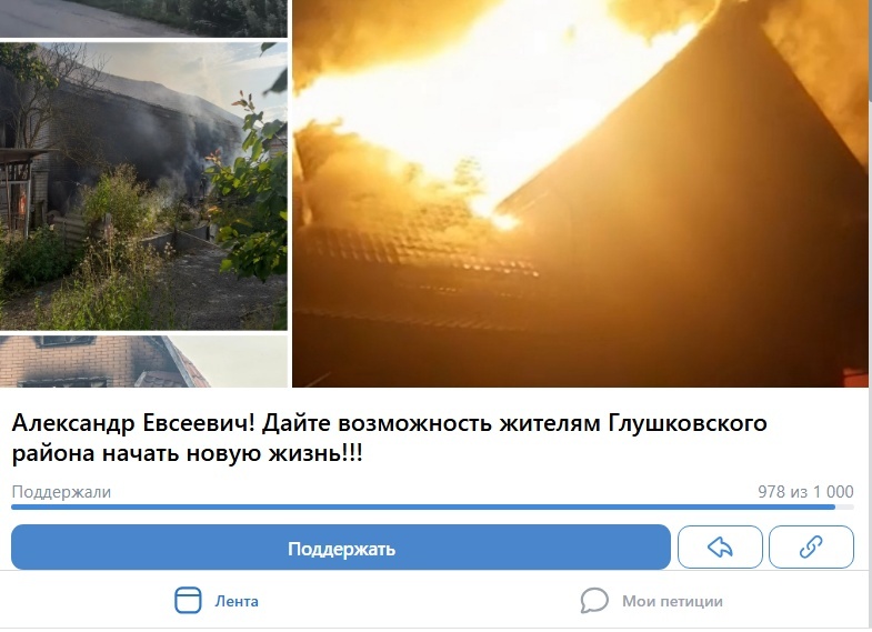 На платформе ВК размещена петиция от имени жителей Глушковского района. За сутки она набрала 986 подписей. Люди обращаются к губернатору Курской области Александру Хинштейну с просьбой начать бескомиссионную выдачу жилищных сертификатов. Куряне напоминают, что получить сертификат без обследования комиссии могут жители, чьи дома расположены в пятикилометровой зоне от границы. «Никто из Глушково и прилегающих сел не может получить жилищные сертификаты — мы не входим в зону, которая получает сертификаты без осмотра специальных комиссий. А комиссия из Курска к нам не едет, потому что находиться в районе небезопасно», — сказано в петиции. Люди говорят, что жилищные сертификаты, льготная ипотека им не положены. «У нас есть фото и видео наших разрушенных домов, которые можно было бы рассмотреть на заседании оперштаба. Но никто этого не делает», — пишут глушковцы. Жители говорят, что ситуация в районе усугубляется. Там практически полностью разрушена инфраструктура, разрушены дома, нет газа, в