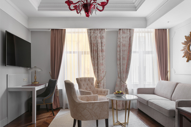 Несколько месяцев назад, аккурат перед Петербургским международным экономическим форумом, я рассказывал о номере, который не удался. Дизайн вышел скучный, невыразительный. Переделывать капитально было поздно — решили «доиграть» его деталями. Цитирую пост в моем ТГ-канале: «Поняли мы это не вчера — пару месяцев назад стало ясно, что номер получился слишком простым. Без характера. Без акцентов. Сделан добротно, но неинтересно. Чего мы только не перепробовали. И мебель переставляли, и аксессуары приносили из других номеров, из других люксов. И из магазинов — тащили всё, что могло хоть как-то сработать. Даже стены перекрасили. Единственное, что мы решили не трогать — это пол, потолки и планировку». Когда-то в этом номере была кухня с барной стойкой. Она выглядела эффектно и многим гостям нравилась — скорее как декоративный элемент, чем как функциональная зона. Но по сути эта кухня была абсолютно бесполезной: никто там никогда не готовил. Даже посуда там была скорее декоративной — её просто
