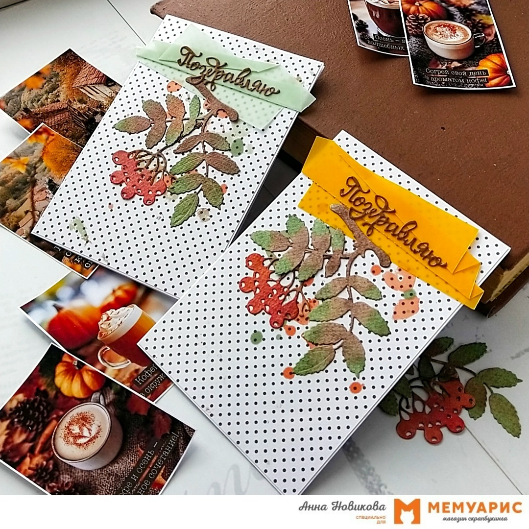 Всем тёплый осенний привет! Это Анна Новикова и мы с вами сегодня окунёмся в наше новое и такое удивительное задание «Цитаты». И напомню, что сейчас мы цитируем Александра Сергеевича Пушкина: «И с каждой осенью я расцветаю вновь…» Вы, наверное, уже видели мою страничку для этого задания, которую я посвятила Пушкину, а сегодня мне захотелось поразмышлять о том, что же у нас может расцветать осенью. И сразу я вспомнила про рябину. Конечно же цветёт она весной, но всю свою яркость и красоту открывает нам осенью. И если повезёт и птички не склюют эти ягодки уже в сентябре, то её яркий наряд будет долго радовать нас. Итак, я решила заскрапить рябину в открытках. У меня получились две открыточки размером 10 х 15 см. Для основы я взяла белую бумагу плотностью 200 гр/кв.м, в качестве фона использовала лист скрапбумаги из старого набора «Simple Flowers» от ScrapМир. И главный элемент - это вырубка ножом «Рябинка малая» от AgiArt. Вырубка была сделана из акварельной бумаги, поэтому я окрасила её