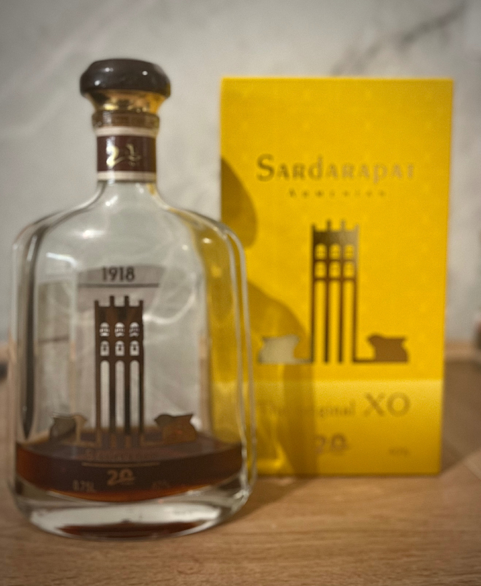 Коньяк Сардарапат от Прошанского коньячного завода. Впервые встретил его на жизненном пути, спасибо другу Сергею Ч. До этого приходилось дегустировать Прощан 22, ХЕNT 30 (вообще не зашел). 40%, дата розлива 2023. Один сорт винограда Кангун (интересно). Аромат Очень насыщенный, 20 лет выдержки, без сомнений, присутствуют. На первом плане подвяленный чернослив, виноград, вишня, изюм (в меру), приятный аромат сушеной травы (бергамот). Вкус Ожидание не совпало с реальностью, к сожалению. Сухой с приятной горчинкой, не спиртуозный. Дубово-травяные нотки, что-то напоминающее орехи и косточки от фруктов, специи. Классической темы от «прощана» во вкусе нет. Очень удивлен… Послевкусие Дерево, перец, вроде и все… Оценка среди двадцаток 5,5 из 10