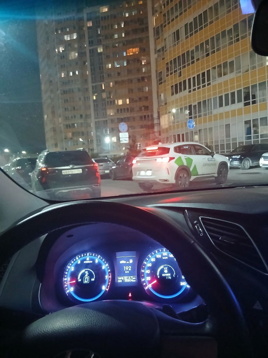 Только что в 20:45 на строителей 20 водитель на каршеринге врезался задним ходом в припаркованный автомобиль
