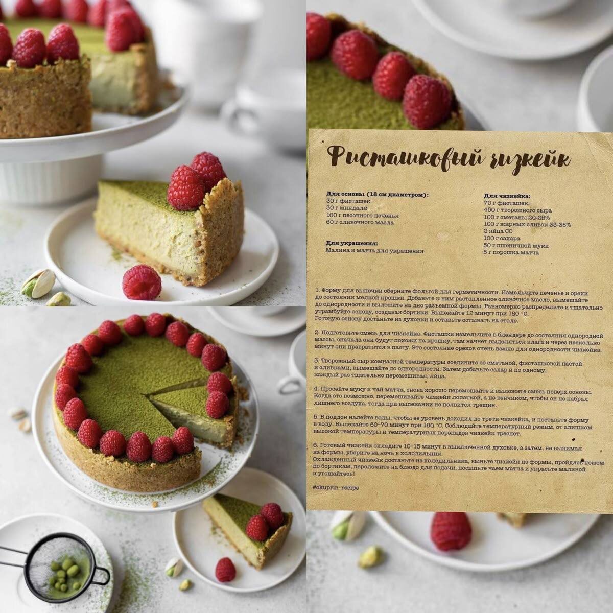 Фисташковый чизкейк 🍰 Для основы (18 см днаметром): 30 г фисташек 30 г миндаля 100 г песочного печенья 60 г оливочного масла Для украшення: Малина и матча Для чизкейка: 70 г фисташек 450 г творожного сыра 100 г сметаны 20-25% 100 г жирных сливок 33-35% 2 яйца СО 100 г сахара 50 г пшеничной муки 5 г порошка матча 1. Форму для выпечки оберните фольгой для герметичности. Измельчите печенье и орехи до состонния мелкой крошки. Добавьте к ним растопленное оливочное масло, вымешайте по однородности и выложито на дно разъемной формы. Равноморно распределите и тщательно утрамбуйте оонову, создавая бортики. Выпекайте 12 минут при 180°С. Готовую основу достаньте из духовки и оставьте остывать на столе. 2. Подготовьте смесь для чизкейка. Фисташки измельчите в блендере до состояния однородной массы, сначала они будут похожи на крошку, начнет выделяться влага и через несколько минут они превратятся в пасту. Это состояние орехов очень важно пля однородности чизкейка. 3. Творожный сыр ком