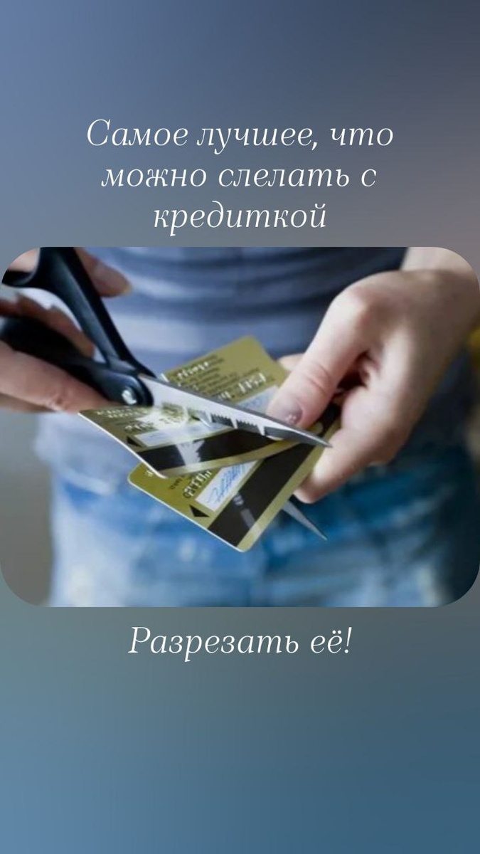 💳 Банки начали массово обнулять лимиты по кредиткам. Многие из вас уже получили уведомления от банков: привычный лимит по карте исчез, а иногда это узнается и вовсе после факта — когда не возможно оплатить покупки. Банки объясняют это тем, что заботятся о клиентах и снижают свои риски. Однако речь идет о другом: держать кредитку в плюсе для банка становится всё менее выгодно, особенно если вы всегда укладываетесь в льготный период и платите вовремя. На самом деле кредитка - это иллюзорные деньги, которые у вас есть. По факту их нет, а вы загоняете себя в долговую яму. Самое лучшее, что можно сделать с кредиткой - это разрезать её Кредитка — это табу для финансового грамотного человека! Никакой это не инструмент для финансовой свободы! Это иллюзия «дополнительных денег», которая чаще всего заканчивается долгами и стрессом. Да, кажется, что карта выручает. Но на деле она всё глубже затягивает в минус! Лучше направлять энергию на другое: составить четкий план по достижению це