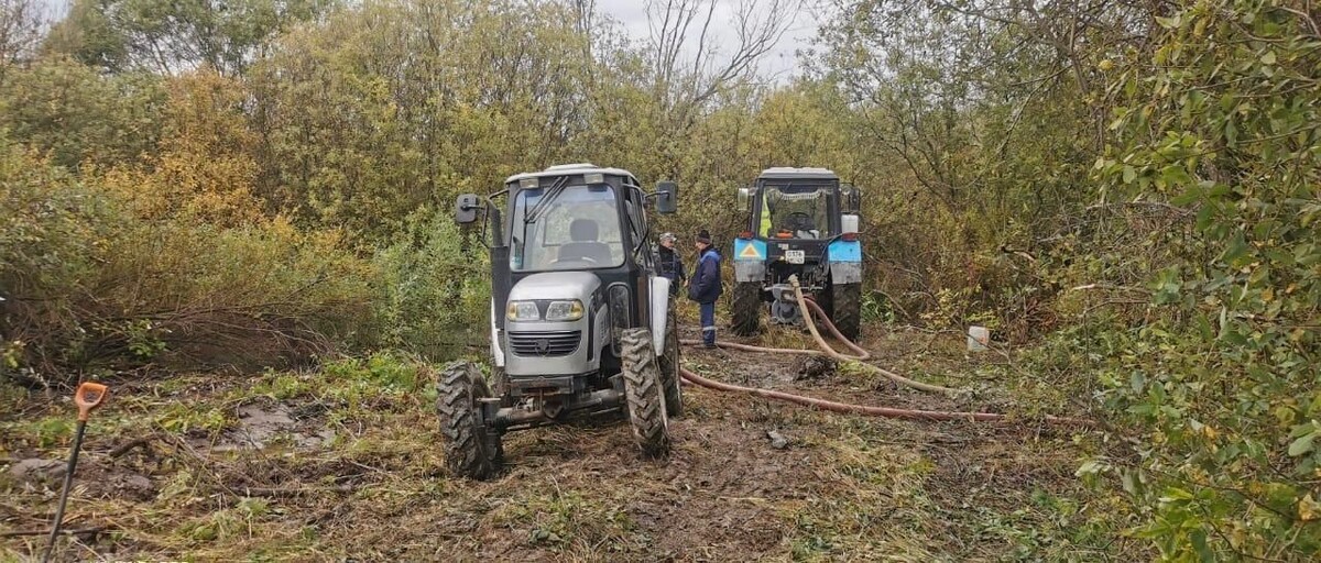 В Киришах устраняют утечку на Волховской набережной