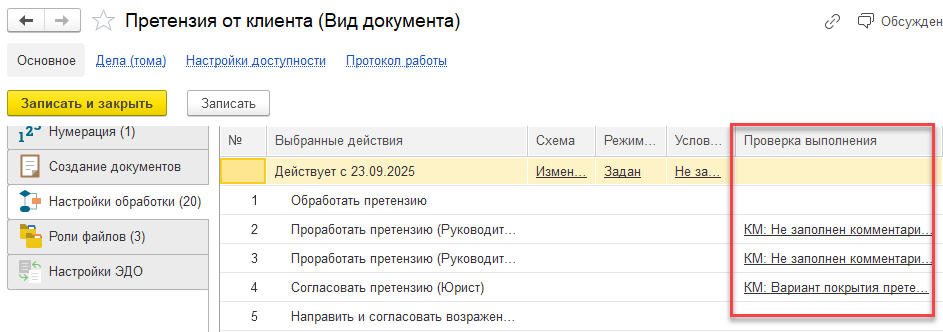 Проверка наличия комментария при выполнении задачи в 1С Документооборот 3