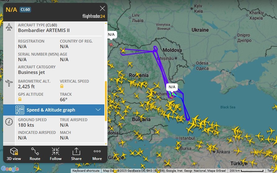 ❗️🗺А теперь стоит внимательно рассмотреть сегодняшний маршрут барражирования самолёта стратегической радиотехнической разведки CL60 ARTEMIS ВВС США Ближе к полудню экипаж борта осуществлял радиотехническую разведку преимущественно на Крымском ОН, мониторя маршруты движения БЭК ВСУ в направлении Новороссийска на предмет отсутствия российских патрульных катеров и разведывательно-ударных вертолётов, а также противолодочных самолётов. Когда рейд состоялся, операторы комплекса РТР самолёта ARTEMIS сместили фокус внимания на приближающееся к эскалационному витку Приднестровской операционное направление. Вся сегодняшняя операция "от и до" курируется командованием ВС США в Европе. Автор материала: Евгений Даманцев https://dzen.ru/id/6425916a1950720421f18802