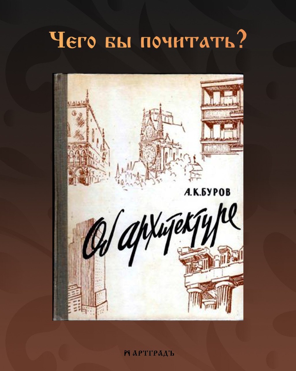 Друзья, продолжаем нашу рубрику о книгах, которые вдохновляют! Сегодня хотим поделиться с вами произведением, которое сильно повлияло для многих о видение архитектуры: «Об архитектуре» А. К. Буров. Эта книга — настоящий кладезь знаний и вдохновения! Автор мастерски описывает не только поствоенное советское домостроение и поиск новых технологий, но и делится своим тонким чувством прекрасного. В книге вы найдете захватывающие зарисовки из путешествий по Европе, наблюдения за Парфеноном и другими архитектурными шедеврами, а также рассказы о том, как архитектура преображается в зависимости от времени суток и света. 🏛🔸🔸🔸🔸🔸🔸🔸🔸🏛 #АртГрадЪ_рекомендации