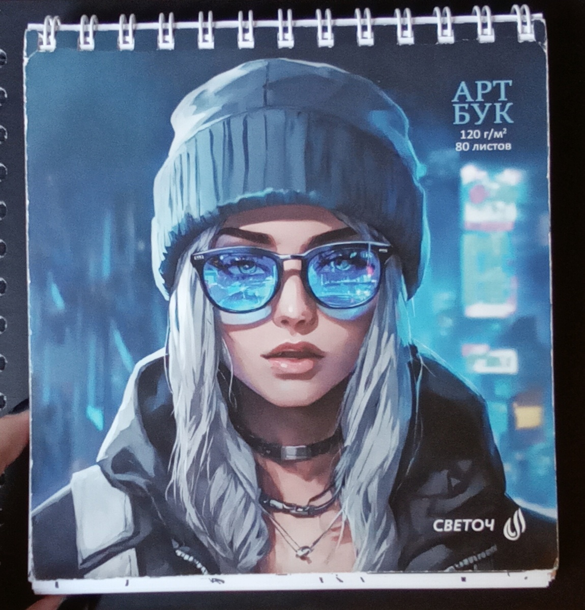 Всем чернично-космический привет! Совсем недавно закончила заполнять скетчбук, в котором рисовала Инктобер. В прошлом году, после того как закончилась инктоберская гонка в октябре, я абсолютно не представляла, что этот скетчбук когда-то подойдёт к концу. Но, к моей радости, этот день настал. Итак, данный артбук "Незнакомка" я приобрела специально для прошлогоднего арт-челленджа Инктобер. Подбирала его по обложке, она мне понравилась по цветам. И по количеству листов - их оказалось 80 штук. Правда, меня смутила пружинка, но, так как, она располагается сверху и не мешает рисованию, приняла ее наличие. Сейчас обложка около неё немного начала рваться, поэтому перелистывать скетчбук нужно аккуратнее. Листы формата 16 см × 17 см мне понравились. На момент покупки мне казалось, что такой формат слишком большой, но сейчас я привыкла и теперь с радостью рисую на листах с такими параметрами. Как вы видите на обложке указано, что листы имеют плотность 120гр/м². На ощупь не гладкие, а какие-т