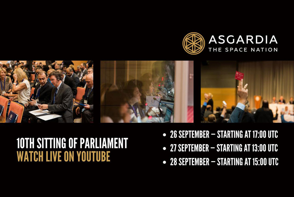 С 17 по 19 Scorpius 0009 (с 26 по 28 сентября 2025 года) состоится X цифровое заседание Парламента Асгардии второго созыва. В повестке заседания – первое чтение трёх ключевых законопроектов: Эти инициативы отражают стратегические приоритеты Асгардии: обеспечение устойчивого освоения космоса, поддержка молодёжи как поколения, которому предстоит строить жизнь за пределами Земли, и выработка новых норм космического права. Асгардия стремится объединить людей в транснациональное, равноправное и прогрессивное общество, чтобы построить новый дом для человечества в космосе и защитить нашу колыбель – планету Земля. Научная цель нации – рождение первого ребёнка в космосе. Асгардия – самая опытная цифровая демократия Земли. Парламент состоит из 150 человек, избранных на прямых цифровых выборах по языковому принципу. Каждый парламентарий работает в одном или нескольких комитетах, отражающих структуру правительственных министерств: наука, финансы, гражданство, международные отношения, информация и