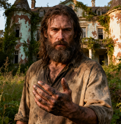 Портрет героя построен сатирически: помещик представляется ленивым, праздным и полностью зависящим от крепостных. По мере развития сюжета его внешний вид меняется — без мужицкой помощи он быстро становится «диким»: обрастает волосами, перестаёт умываться и заботиться о себе. Этот гротескный портрет подчёркивает отсутствие самостоятельности и деградацию личности героя. Описание помещика как «зверя» усиливает сатирическое начало и подчёркивает идею автора об опасности праздности и социальной изоляции.
