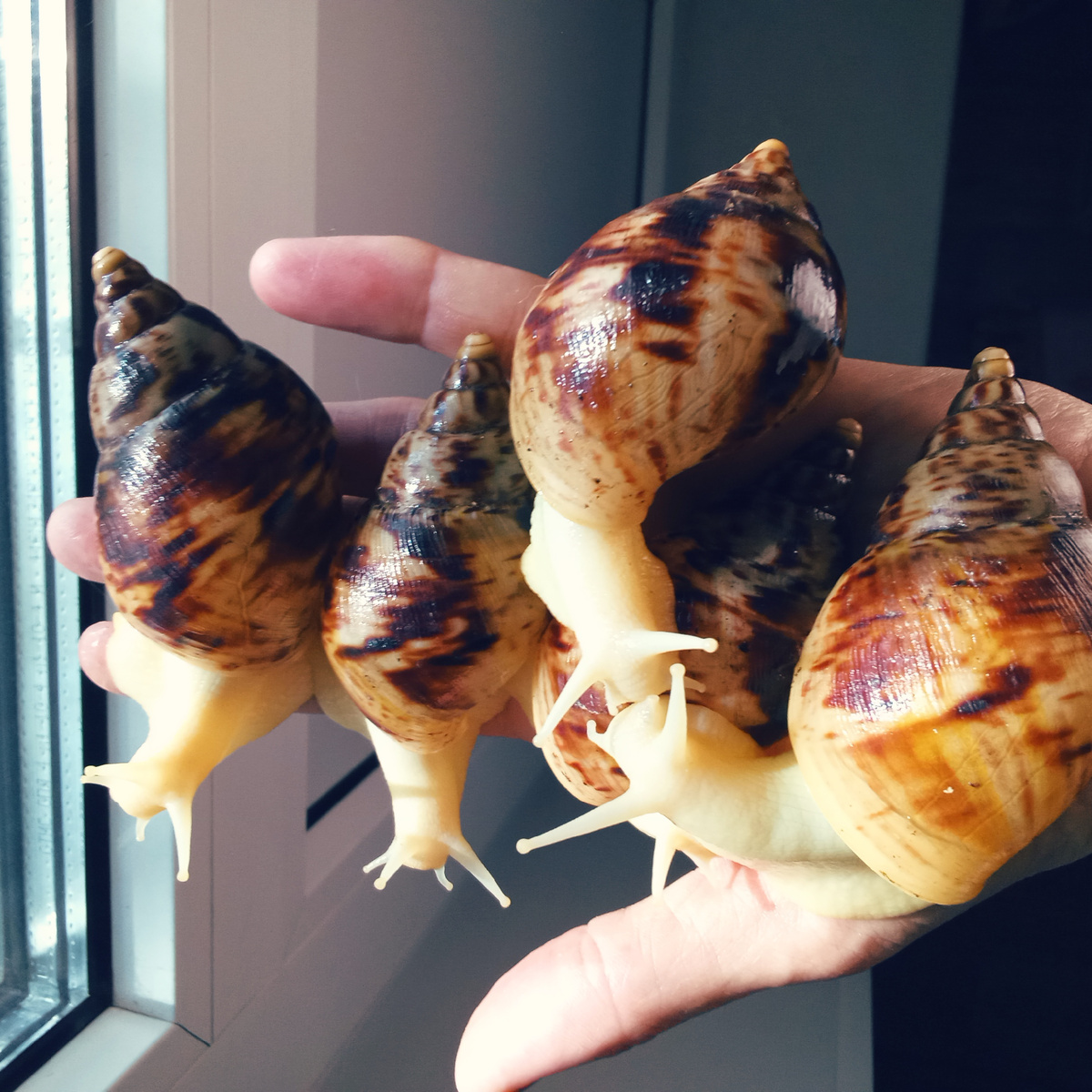 Мои малыши подрастают. Необыкновенно быстро растут,из яйца 5 мм. стали по 5-6 см ракушка в 1 месяц. Только успевай молоть скорлупу. Из всех ахатин и архахатин самые любознательные это- ретики. И днём и ночь активны. Открываешь крышку контейнера и они уже готовы к общению. Остальные архи только у вечеру просыпаются. Малыши очень прожорливы. И выход конечно из них соответственный. Прям свинятки🐖🐖🐖🐖