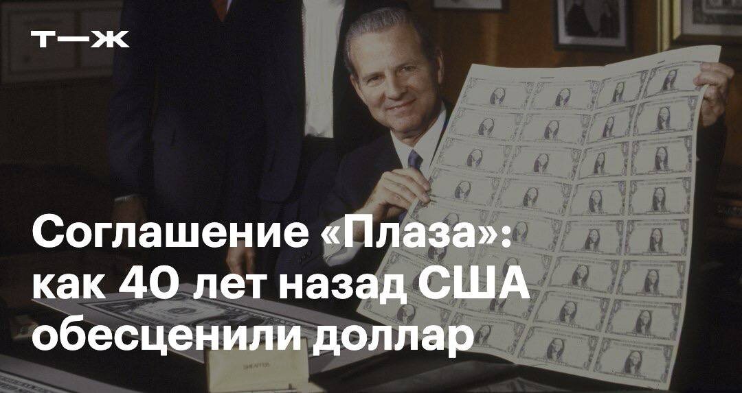 π² ΠΠΎΠΌΡ ΠΈ Π·Π°ΡΠ΅ΠΌ Π½ΡΠΆΠ΅Π½ ΡΠ»Π°Π±ΡΠΉ Π΄ΠΎΠ»Π»Π°Ρ: ΡΡΠΎΠΊΠΈ ΠΈΡΡΠΎΡΠΈΠΈ 40 Π»Π΅Ρ Π½Π°Π·Π°Π΄, Π² ΡΠ΅Π½ΡΡΠ±ΡΠ΅ 1985 Π³ΠΎΠ΄Π°, Π‘Π¨Π Π·Π°ΠΊΠ»ΡΡΠΈΠ»ΠΈ Ρ Π€ΡΠ°Π½ΡΠΈΠ΅ΠΉ, Π―ΠΏΠΎΠ½ΠΈΠ΅ΠΉ, ΠΠ΅Π»ΠΈΠΊΠΎΠ±ΡΠΈΡΠ°Π½ΠΈΠ΅ΠΉ ΠΈ ΠΠ΅ΡΠΌΠ°Π½ΠΈΠ΅ΠΉ ΡΠΎΠ³Π»Π°ΡΠ΅Π½ΠΈΠ΅, ΠΏΡΠΈΠ·Π²Π°Π½Π½ΠΎΠ΅ ΡΠ½ΠΈΠ·ΠΈΡΡ ΠΊΡΡΡ Π΄ΠΎΠ»Π»Π°ΡΠ°. Π‘ΠΈΠ»ΡΠ½Π°Ρ Π½Π°ΡΠΈΠΎΠ½Π°Π»ΡΠ½Π°Ρ Π²Π°Π»ΡΡΠ° Π΄Π΅Π»Π°Π»Π° Π°ΠΌΠ΅ΡΠΈΠΊΠ°Π½ΡΠΊΠΈΠΉ ΡΠΊΡΠΏΠΎΡΡ ΡΡΠ΅Π·ΠΌΠ΅ΡΠ½ΠΎ Π΄ΠΎΡΠΎΠ³ΠΈΠΌ ΠΈ ΠΌΠ΅ΡΠ°Π»Π° ΠΌΠ΅ΡΡΠ½ΡΠΌ ΠΏΡΠΎΠΌΡΡΠ»Π΅Π½Π½ΠΈΠΊΠ°ΠΌ ΠΊΠΎΠ½ΠΊΡΡΠΈΡΠΎΠ²Π°ΡΡ Ρ ΠΈΠ½ΠΎΡΡΡΠ°Π½Π½ΡΠΌΠΈ ΠΏΡΠΎΠΈΠ·Π²ΠΎΠ΄ΠΈΡΠ΅Π»ΡΠΌΠΈ. ΠΠΎ Π·Π°ΡΠ΅ΠΌ Π½Π° ΡΡΠΎ ΡΠΎΠ³Π»Π°ΡΠΈΠ»ΠΈΡΡ ΠΏΠ°ΡΡΠ½Π΅ΡΡ Π‘Π¨Π? Π Π°Π·Π±ΠΈΡΠ°Π΅ΠΌΡΡ Π² ΠΏΡΠΈΡΠΈΠ½Π°Ρ