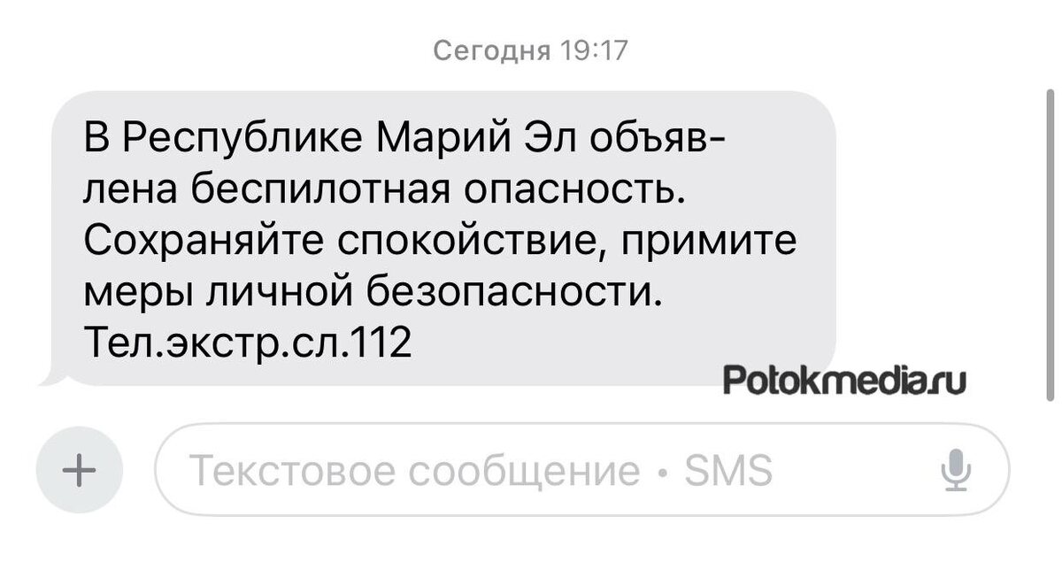 ⚡️Жителям Марий Эл начали приходить СМС-сообщения, предупреждающие об объявлении беспилотной опасности в регионе