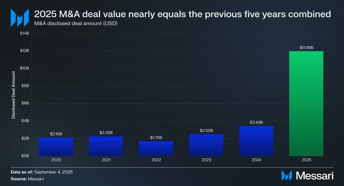 🚨 BIG NEWS: According to Messari, crypto Mergers & Acquisitions in 2025 could totally match the last five years combined! 💰✨ #CryptoTrends #MergersAndAcquisitions