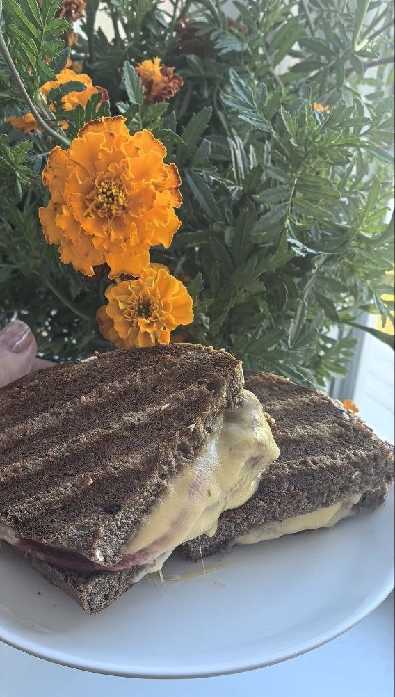 Знакомьтесь, мой главный утренний спасатель. Это не просто бутерброд, это быстрый билет в солнечную Италию, пока вы стоите у плиты в тапках. Весь секрет — в тех самых вяленых томатах, которые обычно скромно пылятся в банке, а рецепт их опубликовала для вас пару дней назад. Но стоит им отправиться в горячий сэндвич, как они просыпаются, дают взрывной вкус и аромат, от которого даже соседи по площадке начинают подозревать, что у вас на кухне открылся филиал римской траттории. Мой муж называет этот сэндвич «антикризисным настроением». Вчера, после сложного утра, он спросил: «У нас что, опять в холодильнике итальянцы шумят?». А я просто улыбнулась: всё, что нужно — это пару минут и правильные ингредиенты. Идеально для тех, кто ценит вкус больше, чем время. 🍅 Почему это гениально: · Вкусовая бомба. Вяленые томаты при нагреве становятся сочными и отдают маслинами и солнцем. · Обманчиво просто. Выглядит как кулинарный шедевр, а готовится проще, чем яичница. · 5 минут. От идеи до хрустящего
