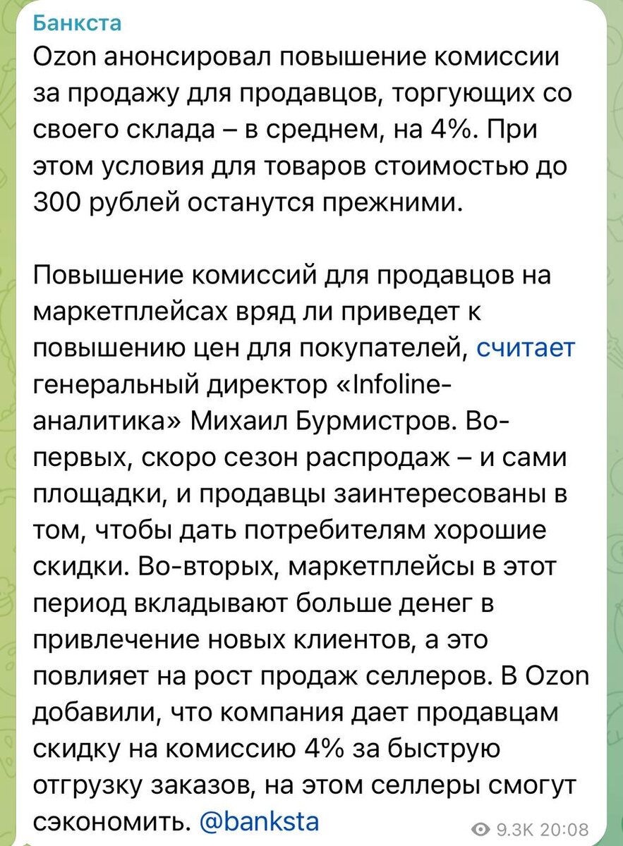 Неожиданная новость о повышении комиссии в этом канале 🥹 Теперь +4% к ФБС. Но! Если будете отгружать вовремя - получите скидку 4% 😁 Представляем, как придумали повышение комиссии: -Шеф, сезон уже на носу. Что придумать, чтобы зарабатывать больше? -Предлагаю: добавим 4% и тут же отдадим обратно, но с условием — доставка за 1 час. Шеф: гений 🤟👊