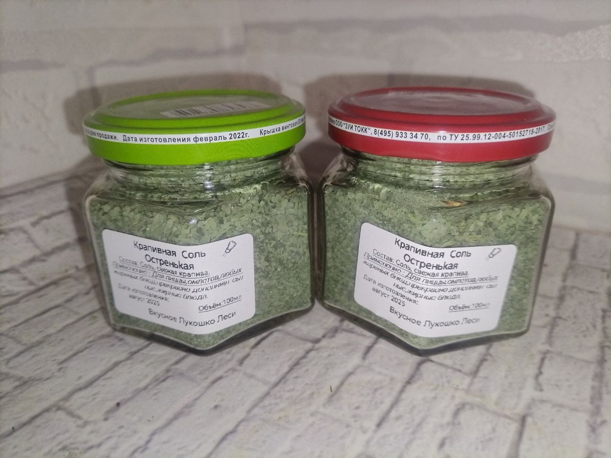 Крапивная соль остренькая 😋 Куда применить 🤔 Такая соль отлично дополнит пиццу, любые жаренные, тяжёлые , сытные блюда. В наличии пока 2 баночки объёмом 100мл. Позже будет "мягкая" крапивная соль.