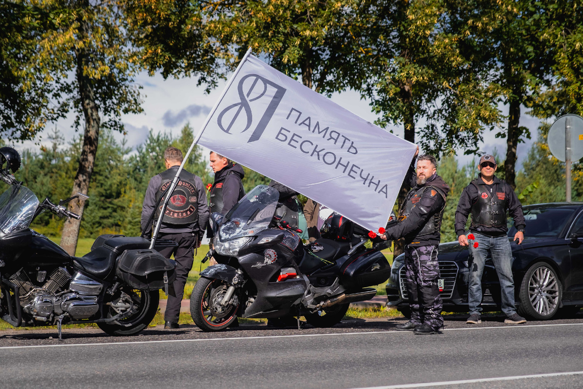 5 сентября из Санкт-Петербурга в путь отправилась колонна мотоклуба «Ночные охотники» — восемь мотоциклов с флагами и символикой проекта. В течение двух дней участники пробега преодолевали путь через несколько регионов.