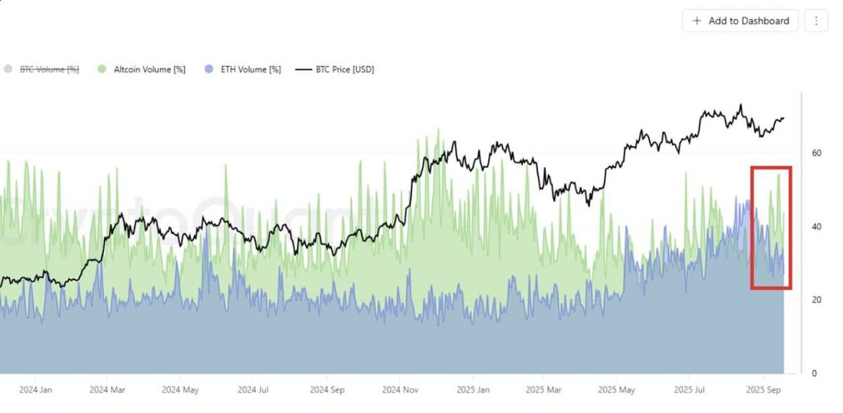 ⏺Аналитики CryptoQuant отмечают, что цикл ротации альткоинов затухает