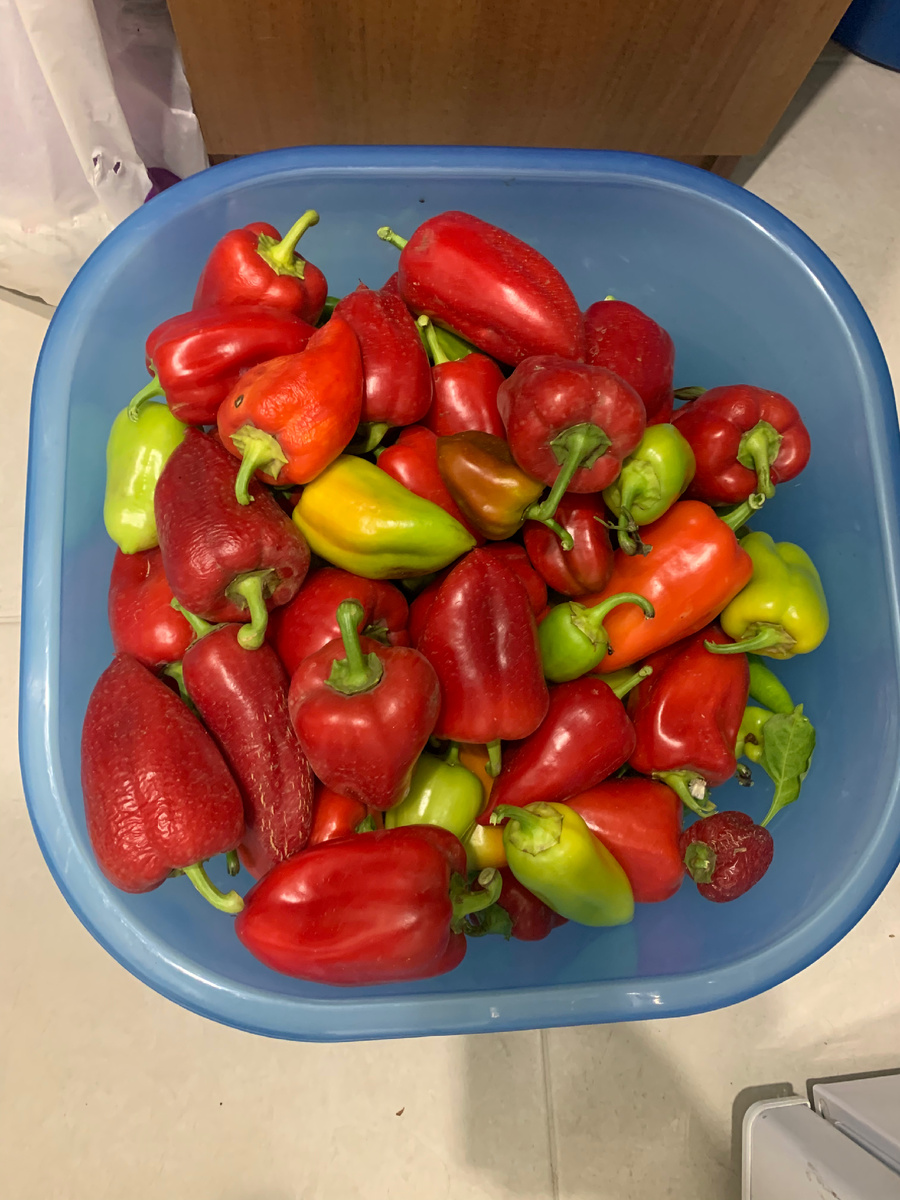 24 сентября у нас последний день лета в этом году. Жара за тридцать. Мы все так же поливали огород, зная, что завтра обещано +5. Но сейчас то растения и не догадываются об этом. Даа, такие перепады это стресс для всех. Убрала все уличные перцы - завтра буду делать заправку для борща на зиму Резала и досушивала некондиционные, или непоместившиеся в холодильник груши. В сушёном виде они слаще конфет, очень вкусные. В теплице наросло немножко огурцов на одну баночку Фасоль еще плодоносит На заморозку я немного отварила ее После варки она становится совсем зеленая. В отличии от краснокочанной капусты и фиолетового перца, которые после тепловой обработки становятся неаппетитного серого цвета. И вода становится зелёной😁 А вечером мы провожали лето - на столе яичница с овощами и сыром и абрикосовая наливка. Лето, до встречи, мы будем вновь ждать тебя. А на память нам остаются прекрасные фото и целый подвал заготовок.