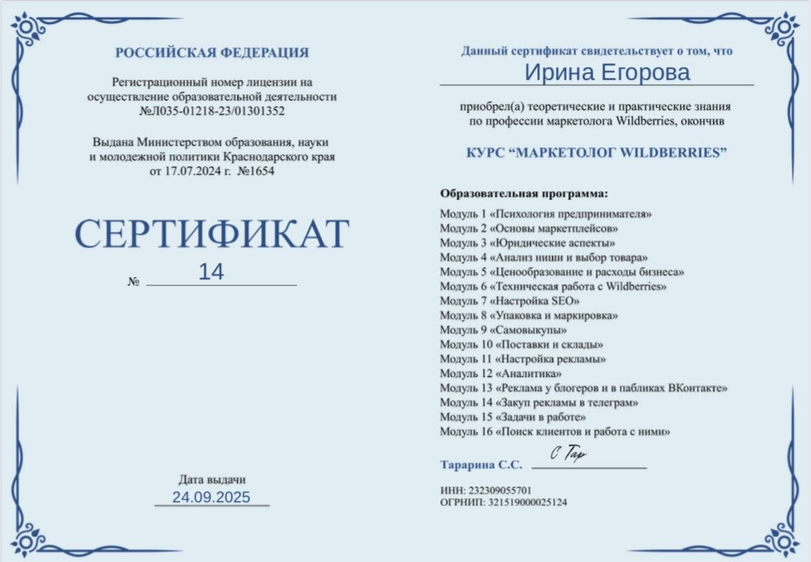 Маркетолог WILDBERRIES и владелец онлайн-школы по WILDBERRIES
