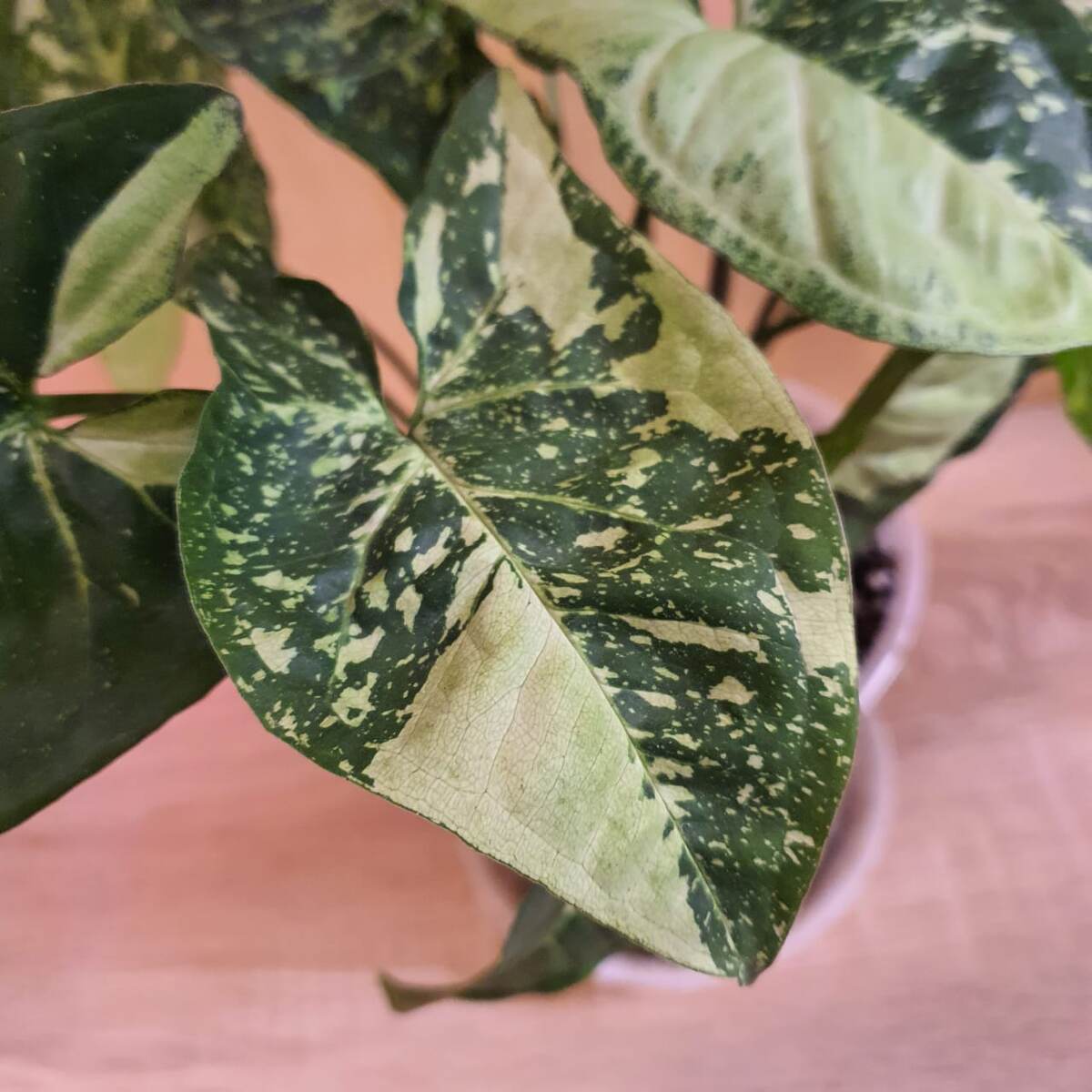 Сингониум Панда ( Panda)- является вариегатным сортом. Это красивое растение, которое имеет средний темп роста. Лиановидная форма делают его отличным выбором для любителей экзотических культур. Листья у данного растения достаточно крупные и имеют форму наконечника стрелы. Каждый имеет острый кончик и гладкую поверхность. Они достаточно плотные и эластичные, поэтому устойчивы к механическим повреждениям и долго сохраняют свою декоративность. Каждый лист обладает индивидуальным узором, напоминающий брызги бледно-зеленого цвета. Листья выпускает плотно друг к другу, что дает возможность сформировать объемный куст. Как и все сингониумы достаточно прост в уходе. Несколько правил ✅ Первым условием для выращивания Панды является очень яркое, но рассеянное освещение. Для того, что бы окраска листьев приобрела максимально яркий и четкий рисунок, можно использовать досветку фитолампами. ✅ Растение довольно лояльно к температурному режиму. Любит тепло- комфортные границы от +18 до +30°C. ✅Синг