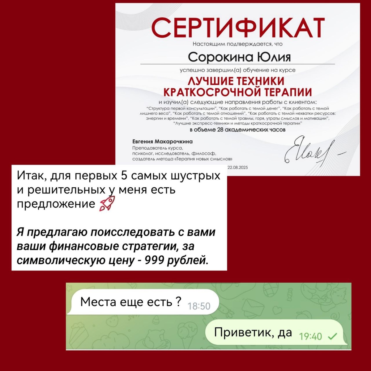 Итак, первый пошел.... Финансы - одна из самых главных сфер в жизни человека, и почти каждый человек так или иначе испытывает определённые трудности в финансах. Поисследовать свои финансовые стратегии, увидеть, что тебя блокирует, и начать выстраивать новые отношения с деньгами - сейчас для этого предлагаю самые классные и вкусные условия 🔥🔥🔥
