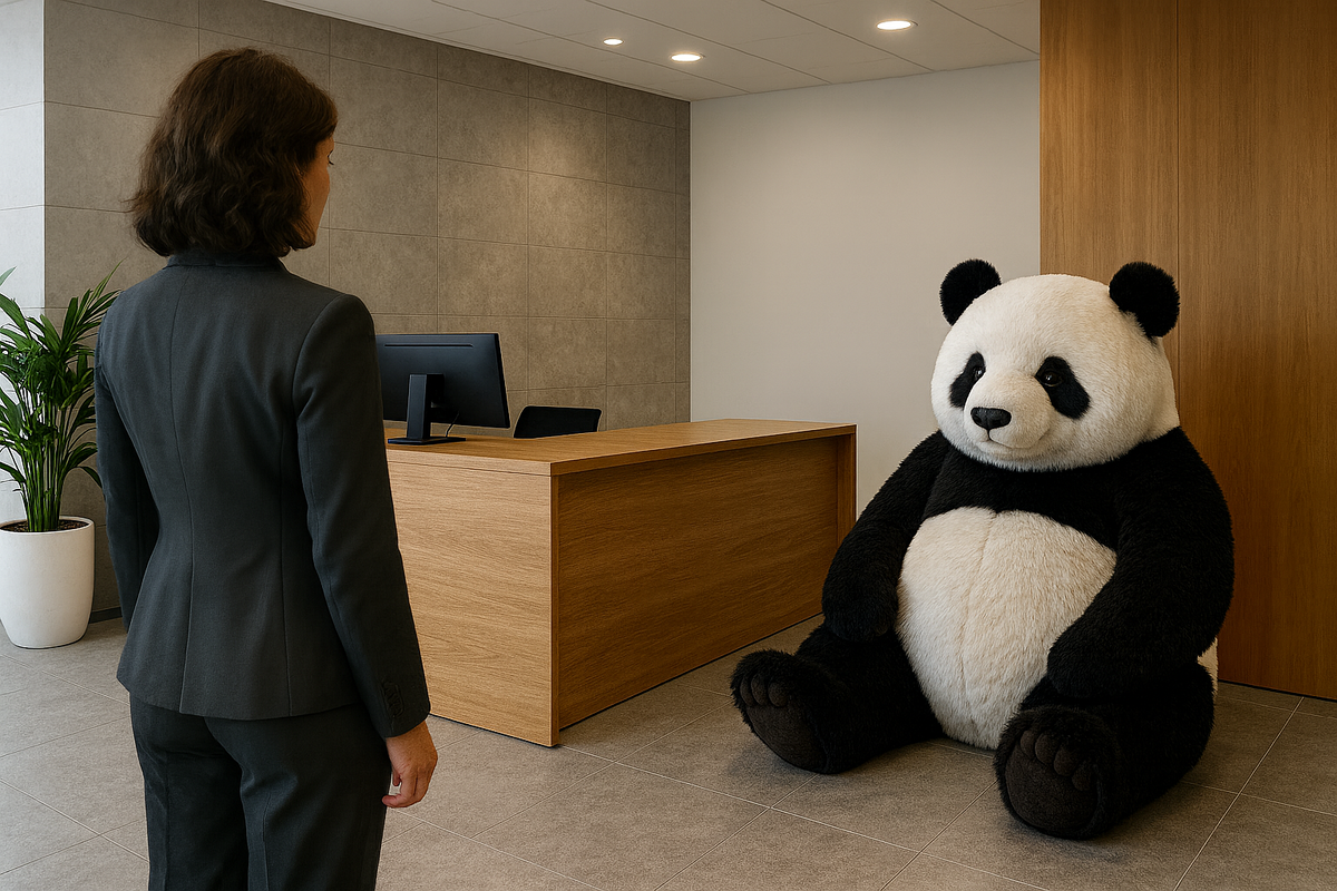 Там, прислоненная к стене, стояла огромная, в человеческий рост, плюшевая панда. В лапах она держала сердце, на котором было криво вышито: «Л. + Л.». От панды слегка пахло дешевым плюшем и наглостью.