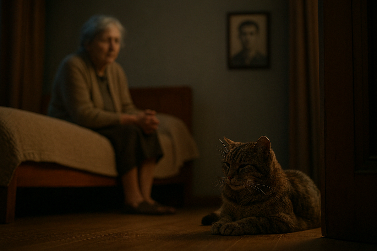 Она пропускает меня вглубь. Кошка выходит сразу. Обходит меня, трётся об ногу — но не требует внимания. Как будто понимает, что мы оба тут не ради неё, а ради кого-то ещё.