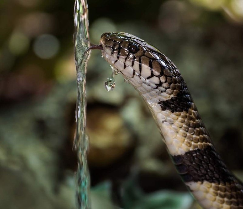 Кольчатая водяная кобра: водный змей-охотник 🐍Кольчатая водяная кобра — крупная ядовитая змея, обитающая в пресноводных водоёмах Центральной и Западной Африки. Длина тела достигает 2,7 метров, окраска варьируется от жёлто-коричневой до тёмно-оливковой с чёткими чёрными поперечными полосами. 🦎Ведёт преимущественно водный образ жизни, отлично плавает и ныряет, может находиться под водой до 10 минут. Питается рыбой, земноводными и мелкими млекопитающими. Яд нейротоксичен, опасен для человека, но кобра редко нападает первой. 🐊В отличие от большинства кобр, не расширяет капюшон при опасности, а предпочитает скрыться в воде. Забавные и милые животные👍 #животные #змея #рептилия