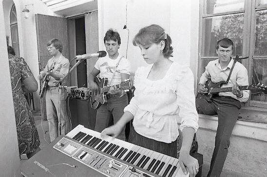Репетиция вокально-инструментального ансамбля колхоза «Путь к коммунизму» Рамонского района Воронежской области, 1982г.