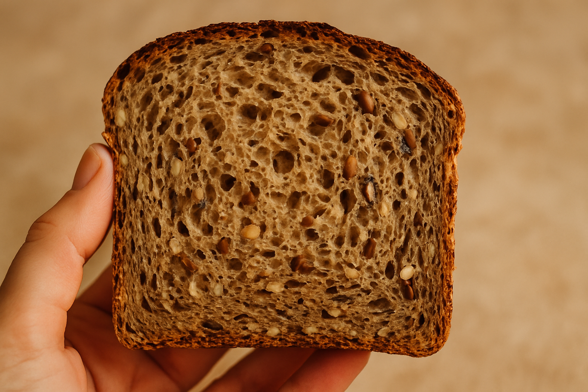 Хлеб действительно враг стройности? Разбираем мифы и учимся правильному выбору! Узнайте, как цельнозерновые хлебцы станут вашим союзником в здоровом питании. Правда: Углеводы — основной источник энергии для мозга и мышц. Диетологи рекомендуют 45-65% калорий получать именно из углеводов. Проблема не в углеводах, а в их качестве! Простые углеводы (белый хлеб, сдоба) дают быстрый скачок сахара. Сложные (цельнозерновые) усваиваются медленно и дают стабильную энергию. Сравним калорийность на 100 г: Парадокс? Хлебцы калорийнее, но порция в 2-3 раза меньше! 30 г хлебцев = 93 ккал против 50 г хлеба = 123 ккал. Клетчатка: 8-12 г на 100 г — больше, чем в яблоке! Надолго насыщает и улучшает пищеварение. Витамины группы В: поддерживают нервную систему и метаболизм. Локальные суперфуды: семена льна и подсолнечника в составе дают омега-3 и витамин Е не хуже дорогих чиа и киноа. Оптимальная порция: 30-50 г в день (2-3 хлебца). Лучшее время: завтрак или перекус до 16:00 — углеводы успеют потратиться н