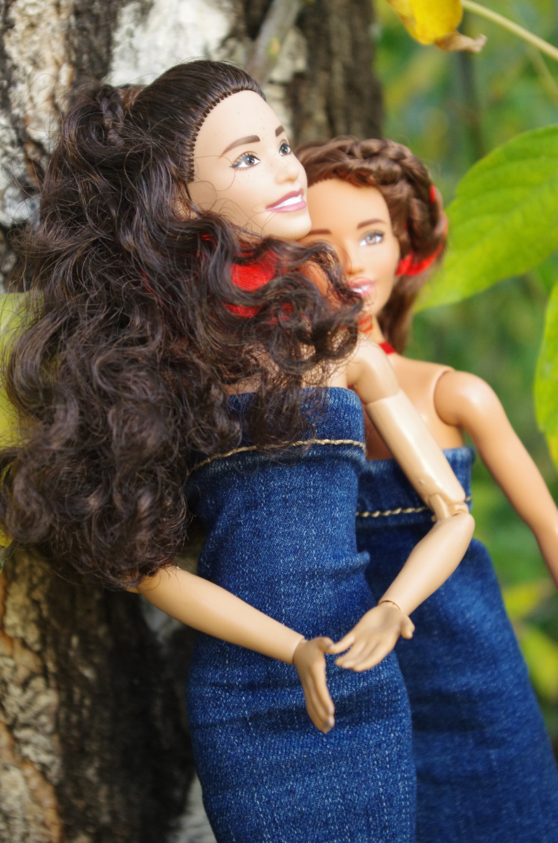 Здравствуйте, мои дорогие! Недавно я сшила два одинаковых сарафана для куколок. Один на стандартную фигуру, второй на пышку. Подруги Лейла и Федан обе со стандартной фигурой. Лейла одела сарафан для пышки, чуть свободный оказался, но нечего. Пойдем, говорят, сфотографируй нас. Пока солнце играет золотой листвой. Подружки не переставая беседовали и успевали любоваться листвой и небом на закате Свет был временами очень яркий))) солнце бросало последние лучи, выбираясь из облаков. Лейле расплела часть косичек и решила оставить пока так. Сейчас расплела полностью все! Получилось даже лучше, чем я ожидала! Теперь другие девушки в процессе своей новой прически. С гладкими ровными волосами, тоже хорошо было. Захотелось перемен, и вот кудри для этой куколки показалось, подойдут. Да, мне нравится результат. Сделаю завтра фото уже с полностью расплетенными косичками. У Федан заводские кудри и хвостик, который ещё не расчесывался. Уже хочется новую ей прическу. Пока держусь. Обзор сделаю в