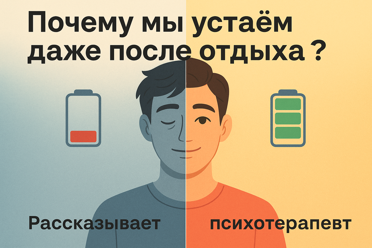 Кажется, отдыхали… но сил всё равно нет. Знакомое чувство? Вы ждали выходные, предвкушая: «Вот сейчас я отосплюсь, отключусь от всего, и будет легче». В итоге два дня пролежали дома, посмотрели сериалы 📺, заказали еду 🍕 - и всё равно к понедельнику ощущение, что внутри пусто, батарейка разряжена 🔋. Почему так? Давайте разбираться. Отдых ≠ бездействие У нас часто есть иллюзия: если я лег и ничего не делаю - значит, отдыхаю. Но организм устроен сложнее. Ему нужен разный «топливный бак» для восстановления. Физическое тело может быть выспавшимся 😴, но при этом мозг перегружен мыслями 🤯, эмоции истощены 😔, а глаза устали от экранов 👀. Поэтому главный секрет: усталости бывают разные, и отдых для каждой - свой. 🛤️ Виды усталости: Почему мы не восстанавливаемся? Что об этом говорит психология? Есть понятие «эмоционального долга». Если мы долго держали стресс в себе, то даже сон или отпуск не стирают его сразу. Организму нужно время ⏳ и правильные способы восстановления. Мозгу важ