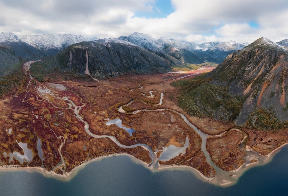 Снимок Евгения Антонова с конкурса РГО «Самая красивая страна». Фото было сделано в Ягоднинском районе Магаданской области. В озеро впадает река Пурга, создавая вот такие извилистые притоки.