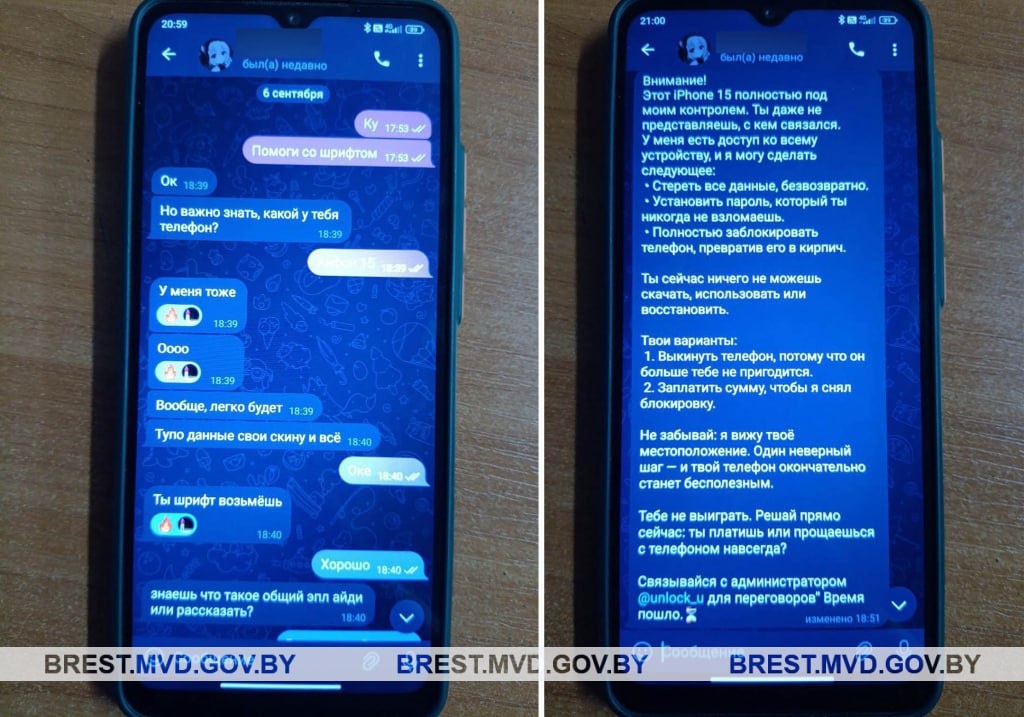 📱Как мошенники превращают iPhone в кирпич #милицияБеларуси ❗️Мошенничества, связанные с учетной записью Apple ID для жителей Брестской области не в новинку. Однако граждане продолжают попадаться на уловки мошенников, когда злоумышленники вынуждают жертв входить со своих устройств в чужую учетную запись Apple ID. А сразу после этого начинают шантажировать свою жертву и требовать перевести деньги за разблокировку. 🔴В такой ситуации оказался 17-летний учащийся из областного центра. Он обратился в Московское РУВД г. Бреста и сообщил, что неизвестные требуют у него деньги за разблокировку телефона. Правоохранители установили, что просматривая один из видеороликов в TikTok парня заинтересовало предложение о возможности скачать на iPhone нужные ему шрифты. Молодой человек связался с автором ролика и дальнейшее общение проходило в Телеграм. Оппонент предложил учащемуся выйти из своей учетной записи и зайти на чужой iCloud, что и сделал парень, предоставив тем самым мошенникам доступ к св