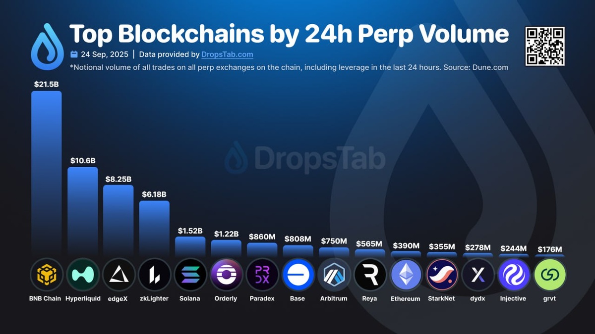 DropsTab: топ-блокчейны по суточному объему торгов фьючерсами