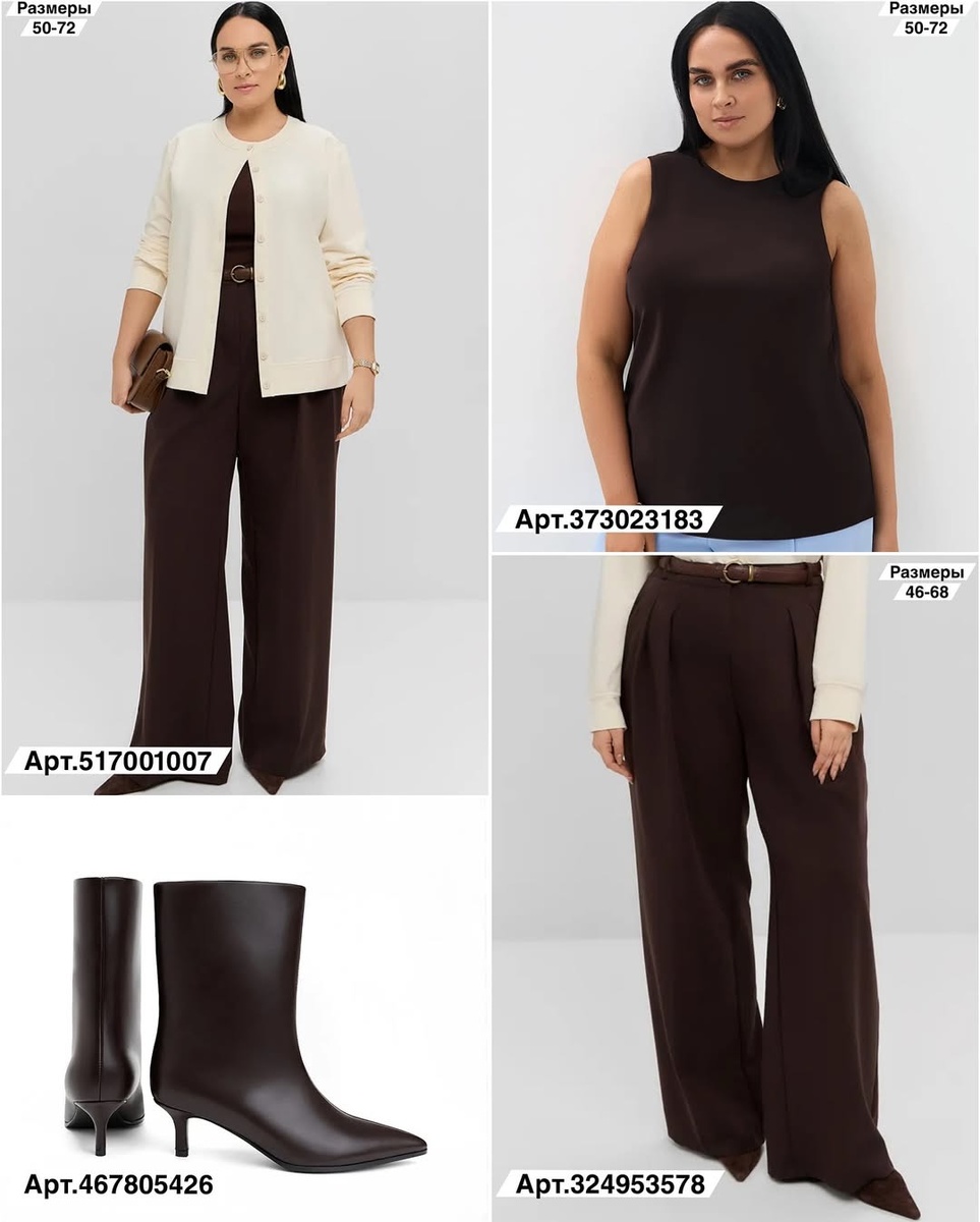 Ниже — три готовые формулы для реальной жизни: в офис, на свидание и на тёплый выходной. Я разобрала каждую вещь строго по артикулам, описала посадку, фактуру, оттенок и добавила советы стилиста, чтобы образ сел безупречно и выглядел «дорого» при любой комплекции.