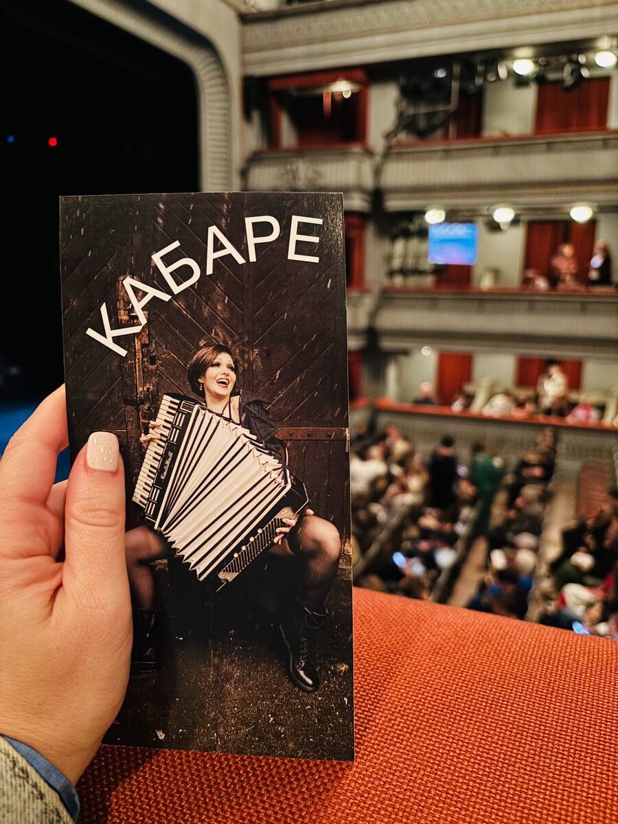 Вчера перед Театром Наций, открыв в телефоне билет на «Кабаре», даже с удивлением посмотрела на дату покупки, вспомнив, что покупала я его еще в мае. Соответственно, предвкушение было большое. «Кабаре» я люблю, и давно хотелось посмотреть его в постановке Евгения Писарева (в 2023 г. этот мюзикл собрал 5 Золотых Масок).