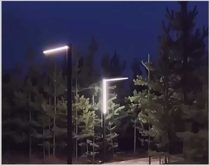 Г-образная форма — это классика жанра, но какая эффектная! Такой светильник напоминает современный бра или торшер, только гигантских размеров и предназначенный для улицы. Его магия в направленном свете. Установленный вдоль садовой дорожки, он мягко освещает именно путь под ногами, не слепя глаза и не рассеивая свет впустую в ночное небо. Это грамотное, энергоэффективное и абсолютно дизайнерское решение.